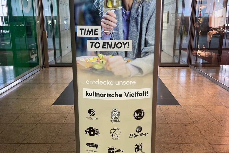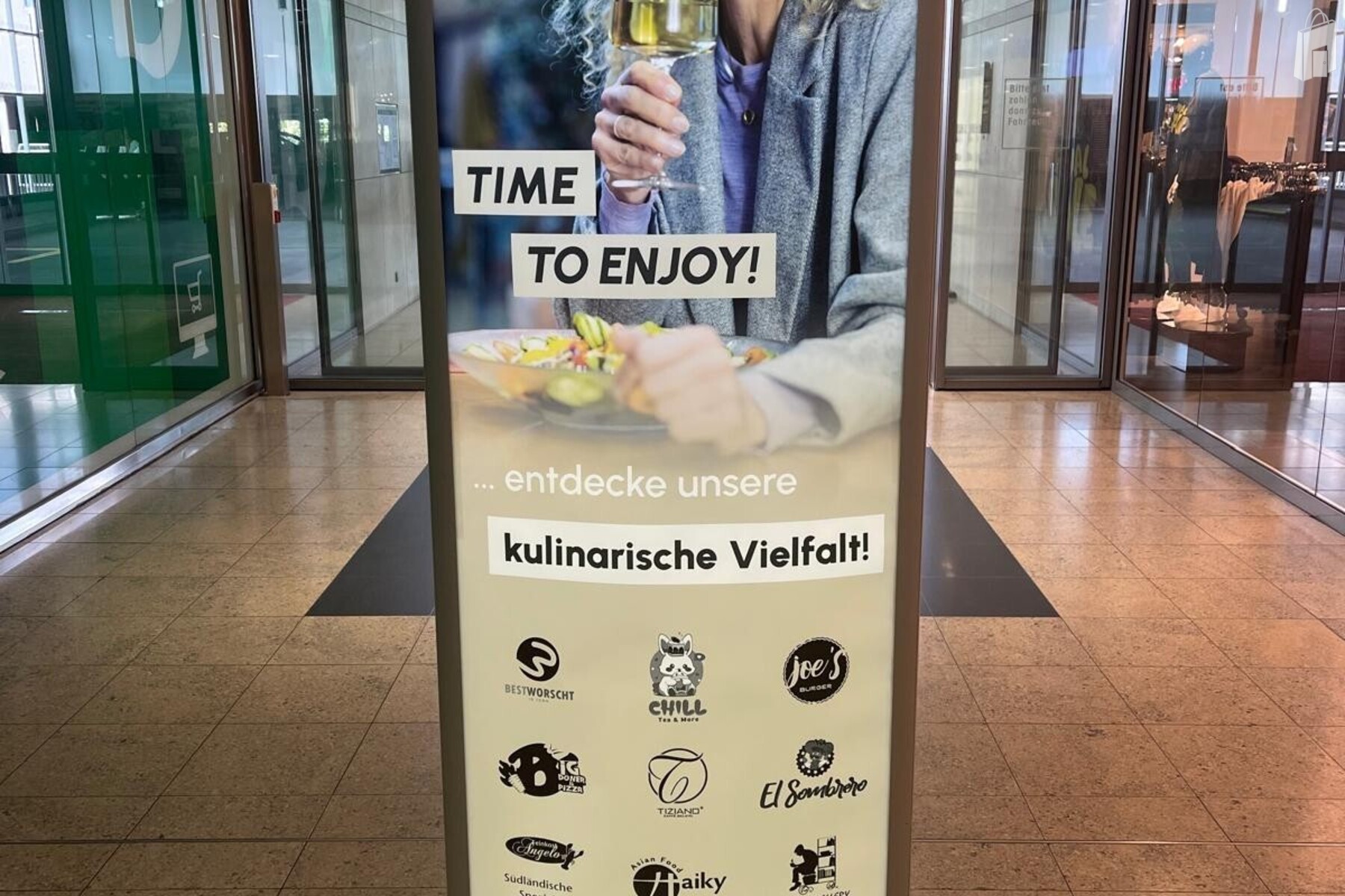 Die beleuchteten Werbesäulen mit je 2 Werbeflächen im Erd- und Obergeschoss bieten eine gute Werbemöglichkeit zentral im Center. Ca. 8 Leuchtstelen sind im Center an den Rolltreppen prominent platziert.